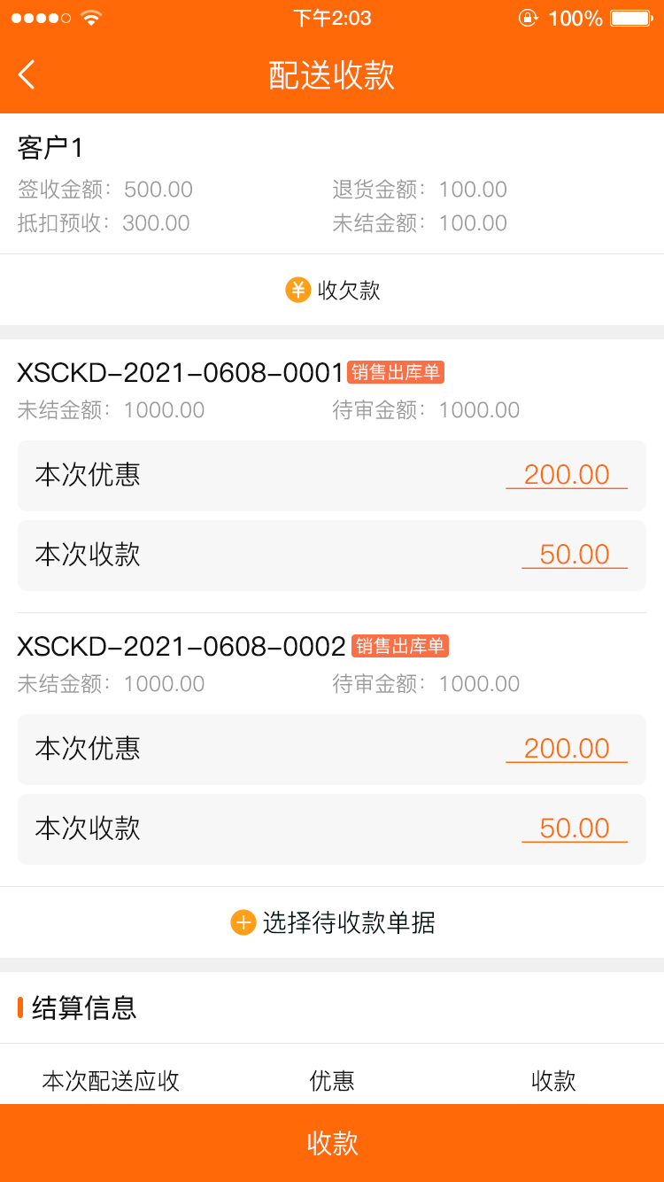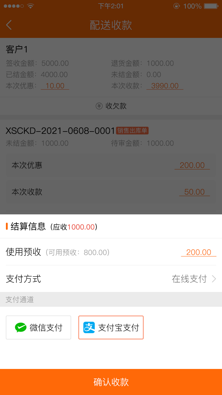 场景2:司机配送后,APP现场收款