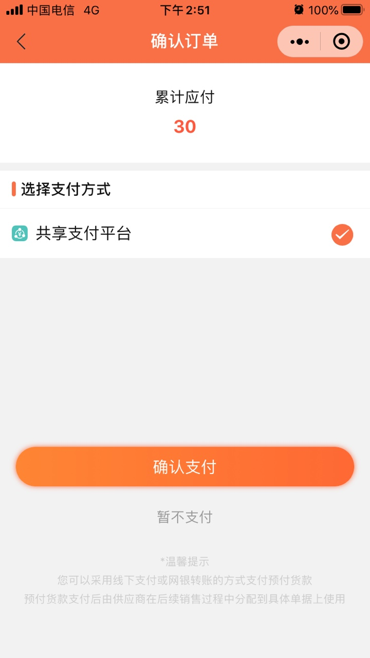 业务员拜访客户进行上门销售,需要当场结算时,在下单完成后可直接打开APP的收款码,收取当次交易金额,快速完成此次交易。
